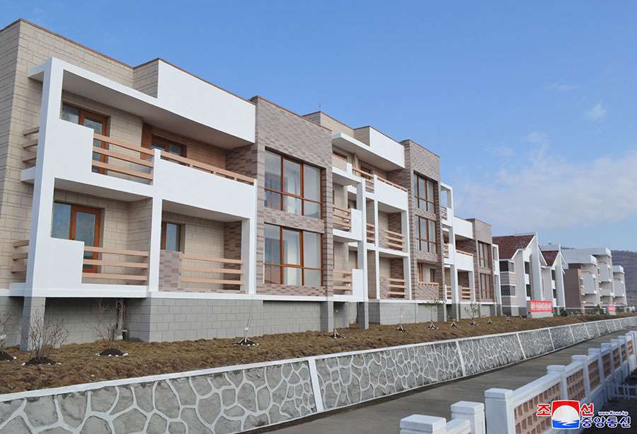 Al pie del hermoso monte en la comuna Changhyo, de la ciudad de Hoeryong, se levantaron viviendas de uno y varios pisos para más de 120 familias, dotadas con todas las condiciones y ambientes necesarios para la vida de acuerdo con el principio de la preponderancia de la comodidad y la estética.