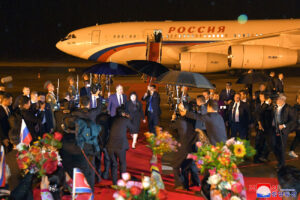 El Aeropuerto Internacional de Pyongyang estaba caldeado por el clima de bienvenida a los enviados rusos que visitan a la RPDC en el tiempo en que se hace más fuerte que nunca el sentimiento de amistad como resultado de la reciente cumbre histórica Corea-Rusia.