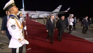 El estimado camarada Kim Jong Un, Secretario General del Partido del Trabajo de Corea y Presidente de Asuntos Estatales de la República Popular Democrática de Corea, ha recibido al Presidente de la Federación Rusa, Vladimir Vladimirovich Putin, la madrugada del 18 de junio, a pie de pista del Aeropuerto Internacional de Pyongyang, quien realiza una visita de Estado por invitación del Secretario General.