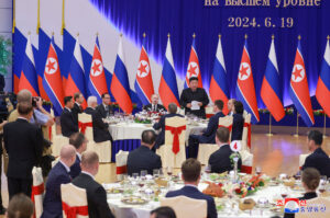 Se mostró muy emocionado por haberse reunido en ese banquete en honor de Putin, huésped de Estado más distinguido para el pueblo coreano, en un día histórico en que se produjo un gran acontecimiento, o sea, la firma del nuevo tratado interestatal más efectivo y abarcador en las relaciones de amistad de ambos países.