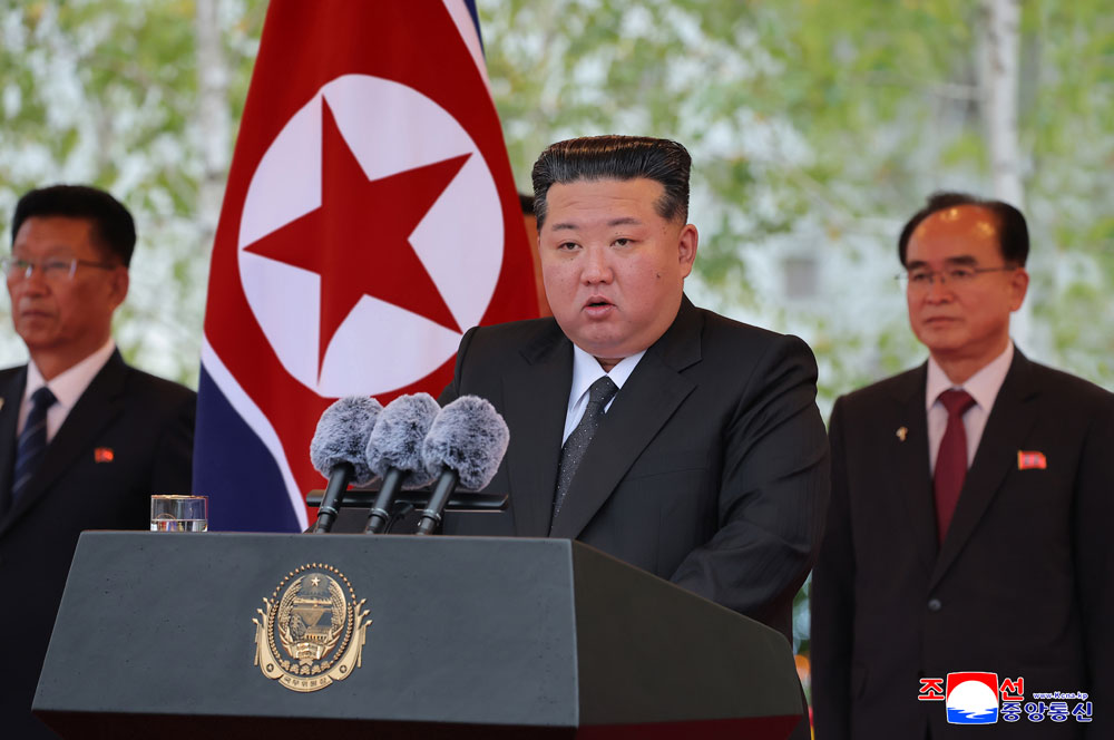 Llegó al lugar el estimado camarada Kim Jong Un, Secretario General del Partido del Trabajo de Corea y Presidente de Asuntos Estatales de la República Popular Democrática de Corea.