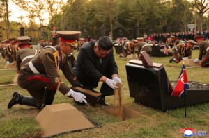 Se dispararon las salvas en honor de los mártires que demostraron con sus conductas patrióticas qué tipo de vida han de llevar los soldados del EPC por el Partido y la patria y qué deben dejar ante la patria y que sublimaron la invencibilidad de la Corea heroica.